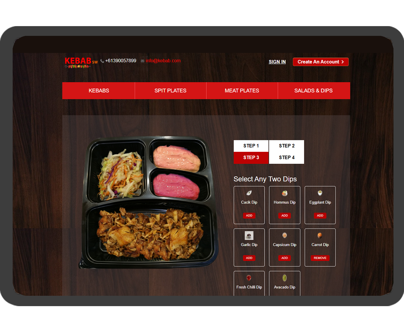You can pick and choose and customise your kebab order. Choose additional toppings, add or remove toppings, kebab base, size, sauces etc. You have the options to customise deals based on your promotions..